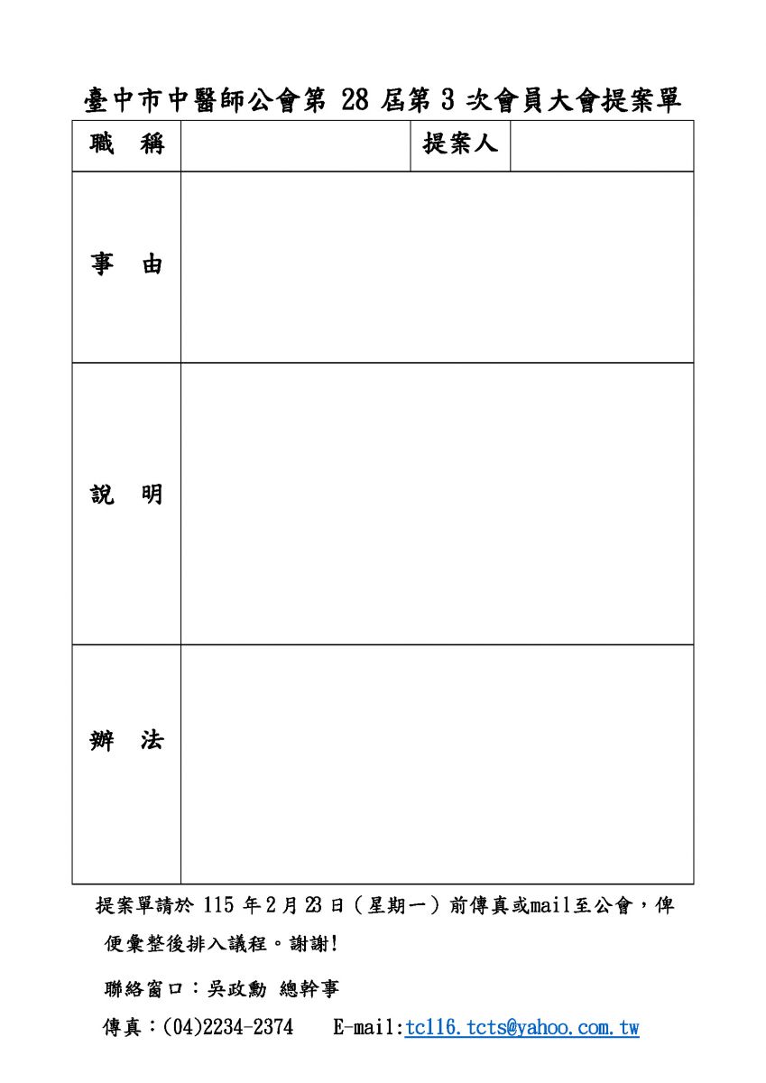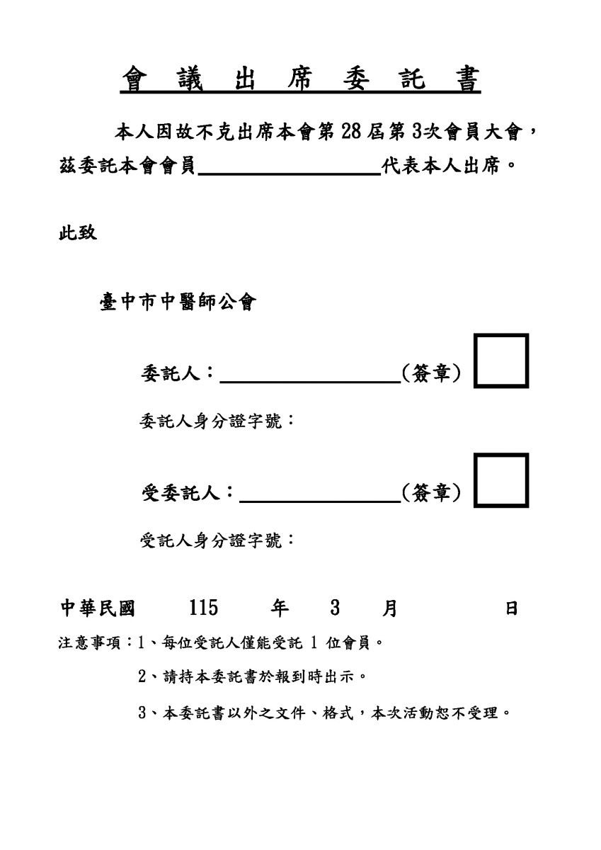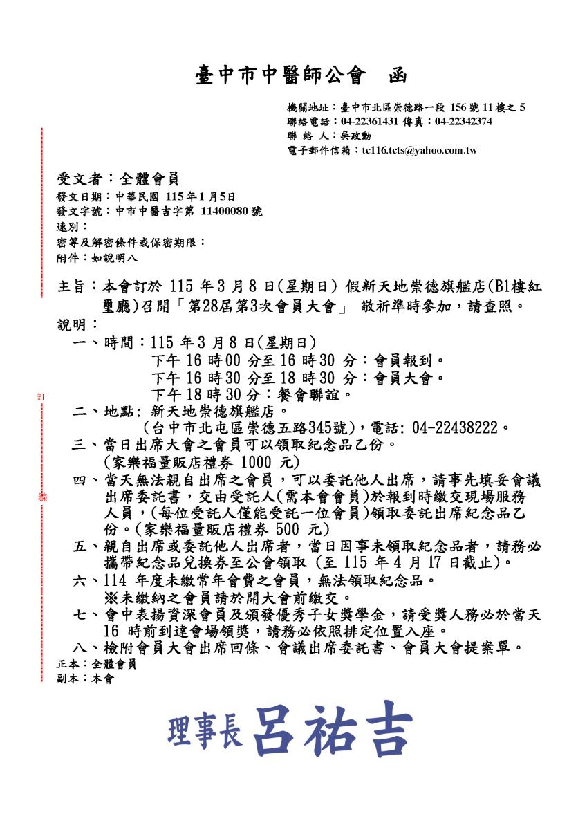本會訂於 115 年 3 月 8 日(星期日) 假新天地崇德旗艦店(B1樓紅璽廳)召開「第28屆第3次會員大會」 敬祈準時參加,請查照。